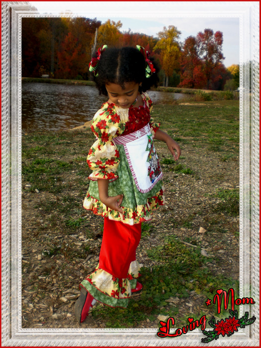 *long-sleeved dress * *red corduroy pants* *very detailed removable apron* *matching necklace*