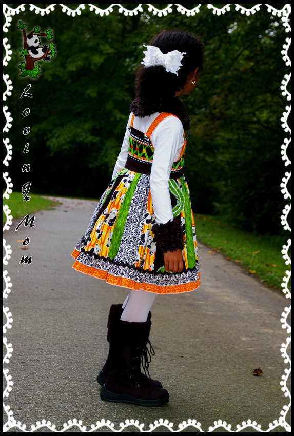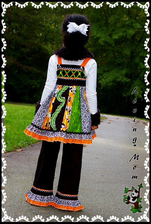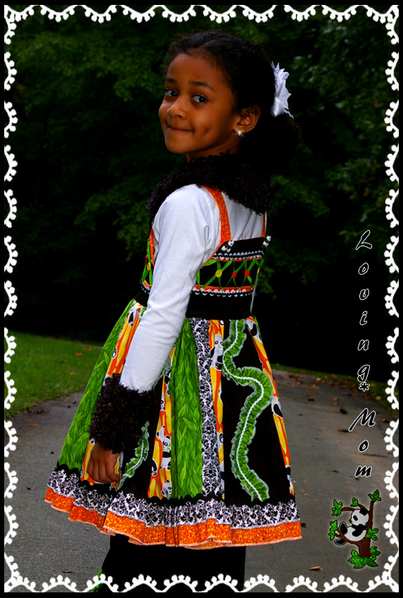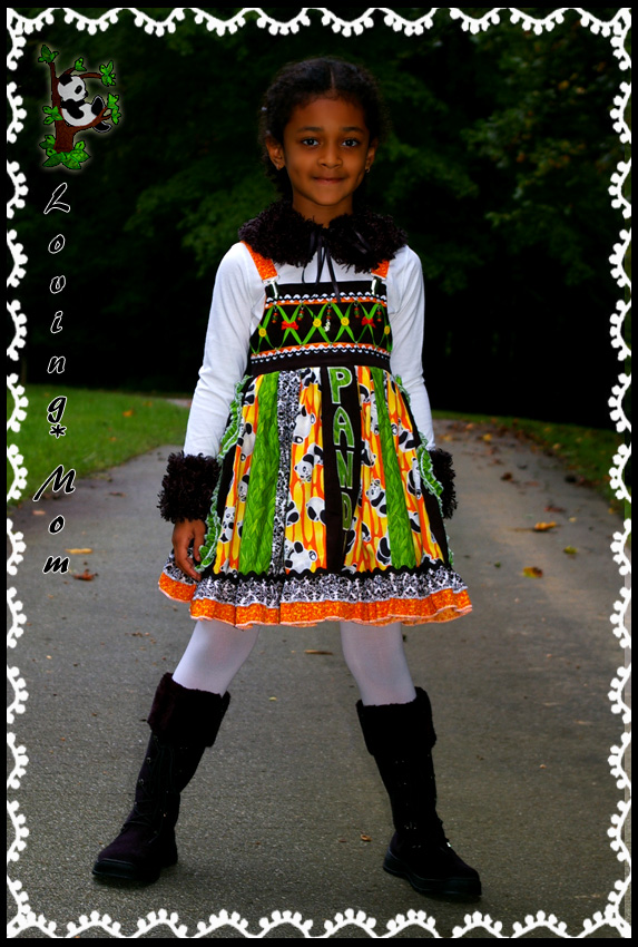 *super full stripwork jumper dress* *3D appliqué ruffle pants* *removable fur cuffs and collar*