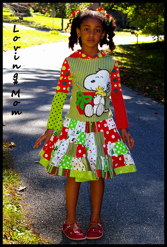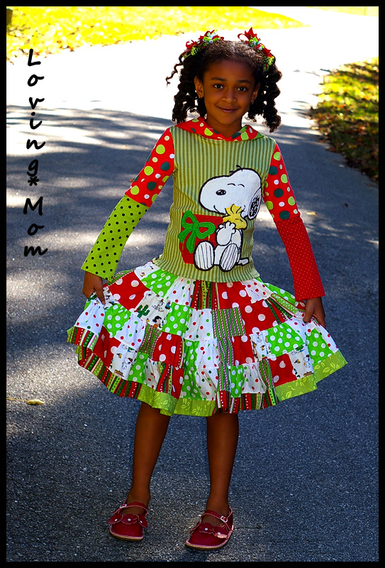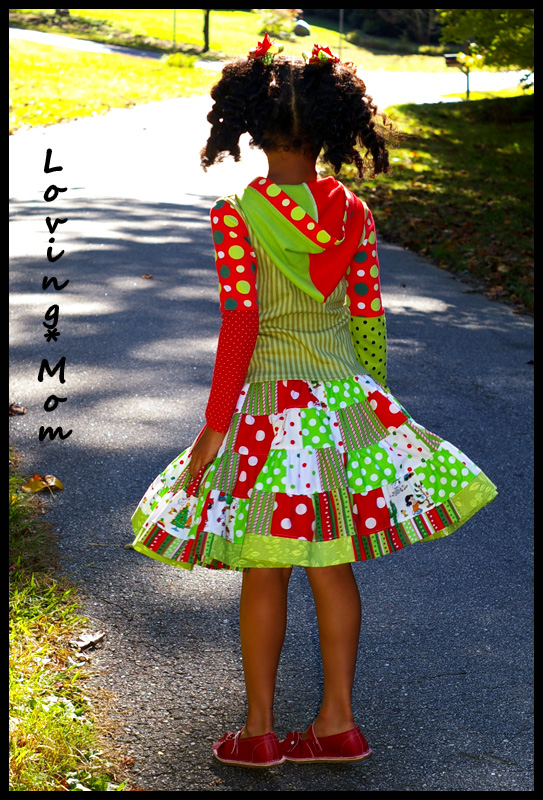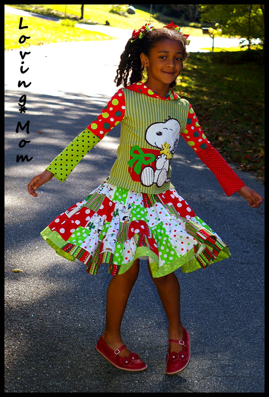 *custom appliqued knit hoodie* *patchwork twirl skirt*